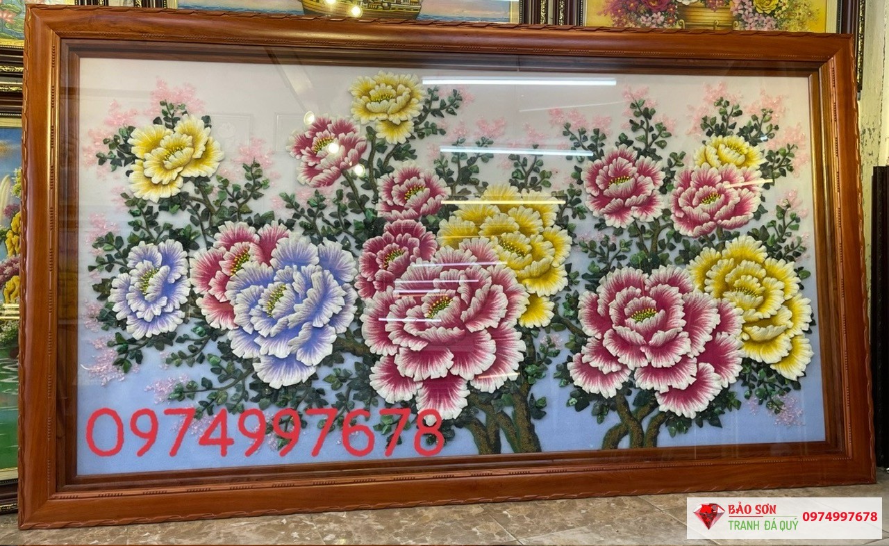 - Tranh Đá Qúy Bảo Sơn xin được gửi đến quý khách ý nghĩa và giá trị phong thuỷ của mẫu. Tranh đá quý hoa mẫu đơn 3d. Đây là mẫu tranh rất phù hợp để treo trong gia đình, cơ quan, hoặc làm quà tặng. Chúng sẽ mang đến cho gia chủ nhiều may mắn, bình an, tài lộc, thành công. Điều khí an lành cho ngôi nhà của bạn.