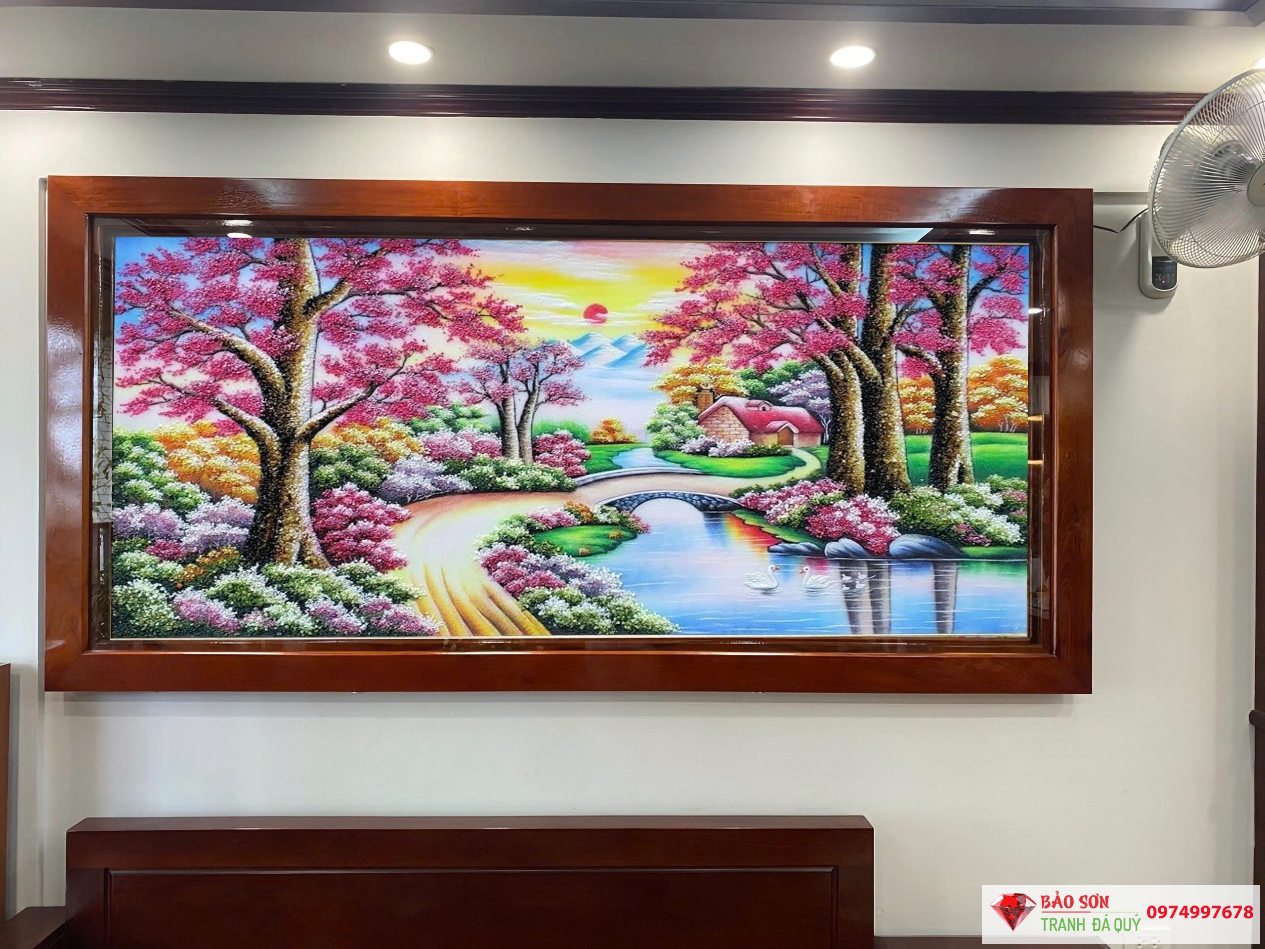 Tranh đá quy rừng cây lá đỏ với kích thước 100/148 cm bao gồm cả khung. Tranh được chế tác thủ công từ đá quý thiên nhiên 100% với điểm nhấn là đá ruby đỏ quý hiếm. Tranh có độ bền rất cao, có thể trà rửa xà phòng thoải mái. uy tín chất lượng. miễn phí vận chuyển toàn quốc. liên hệ : 0974997678